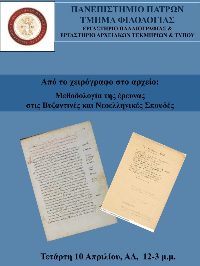 Από το χειρόγραφο στο αρχείο: Μεθοδολογία της έρευνας στις Βυζαντινές και Νεοελληνικές Σπουδές