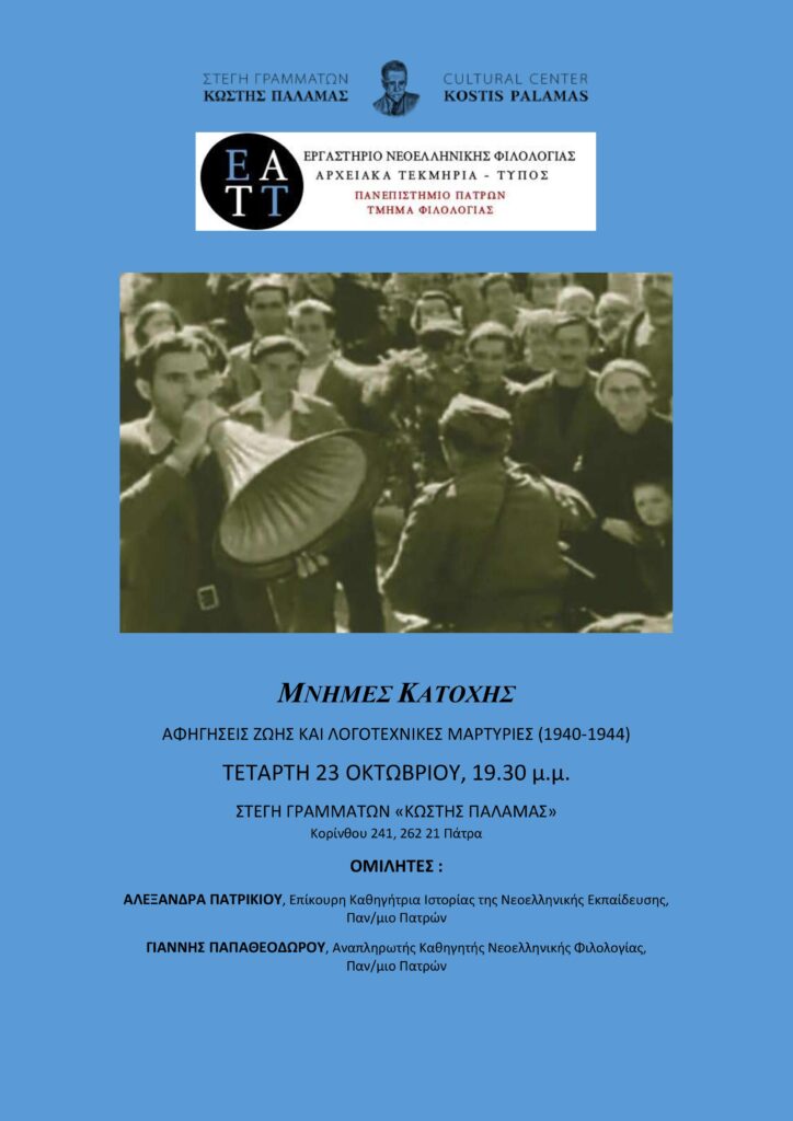 ΜΝΗΜΕΣ ΚΑΤΟΧΗΣ – Αφηγήσεις ζωής και λογοτεχνικές μαρτυρίες
