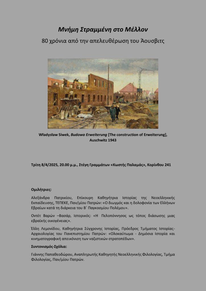 Η εκδήλωση πραγματοποιείται από την πρωτοβουλία: “Μνήμη στραμμένη στο μέλλον“, στο πλαίσιο των εκδηλώσεων μνήμης για τα 80 χρόνια από το τέλος των ναζιστικών θηριωδιών και τη λήξη του Β’ Παγκοσμίου Πολέμου στην Ευρώπη.